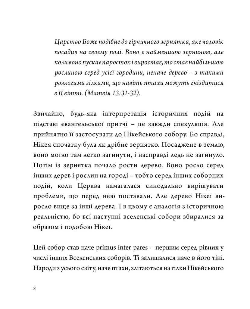 «Нікея і соборність» - це сучасний, глибокий і водночас доступний погляд на найважливішу подію у становленні християнської думки - Перший Вселенський собор 325 року. У цій книзі Нікея перестає бути лише історичним фактом. Вона оживає - як місце зустрічі, як духовний імпульс, як зерно, що проросло крізь століття й визначило те, якою Церква є сьогодні.