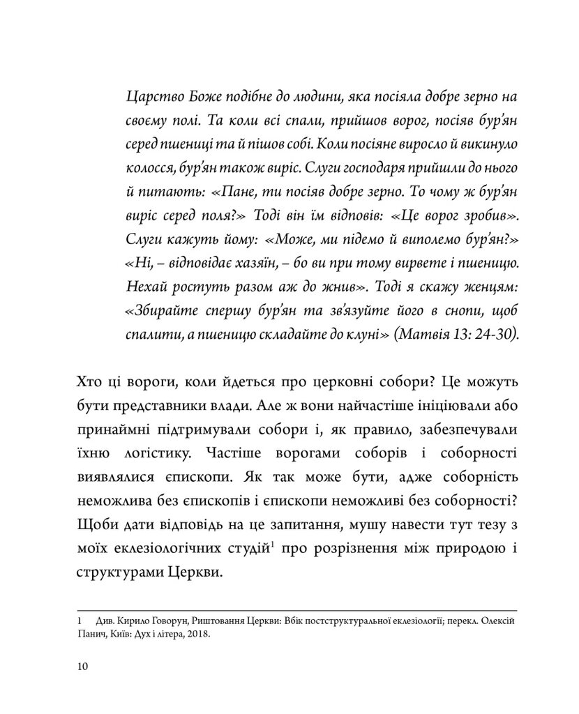 Автор розкриває соборність не як абстрактне богословське поняття, а як динамічний досвід спільного пошуку істини, який почався в античності й продовжується навіть у XXI столітті. Від Аристотеля та Езопа - до Критського собору 2016 року; від римських доріг - до сучасної глобалізованої християнської спільноти.