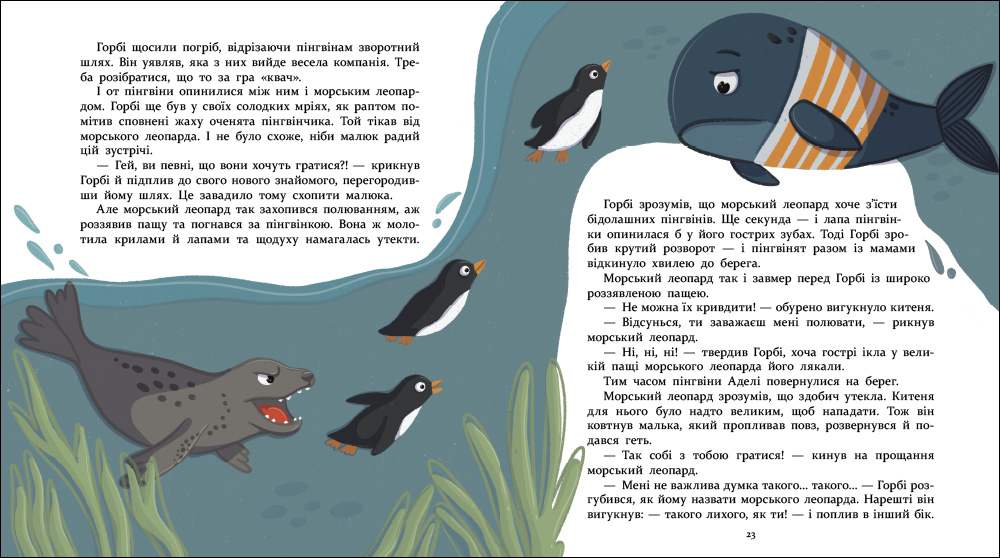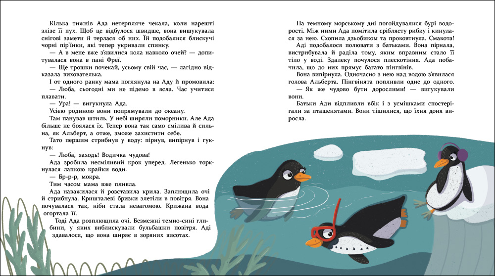 Маленьке тюленятко, привітне китеня, пухнасте пінгвіненятко, мрійливий поморник — усі вони мешканці далекої для нас Антарктики. Може здатися, що сніги і криги роблять цей край похмурим і непривітним. Проте маленькі герої оповідань доведуть зворотнє: і тут є місце для досліджень, яскравих пригод і дивовижних знахідок. Чому на маму краще чекати вдома? Де шукати друзів? Як не боятися дорослішання? Що допомагає здійснити мрію? Про це в добірці оповідань. Тож рушай у пригоди разом з казковими героями.