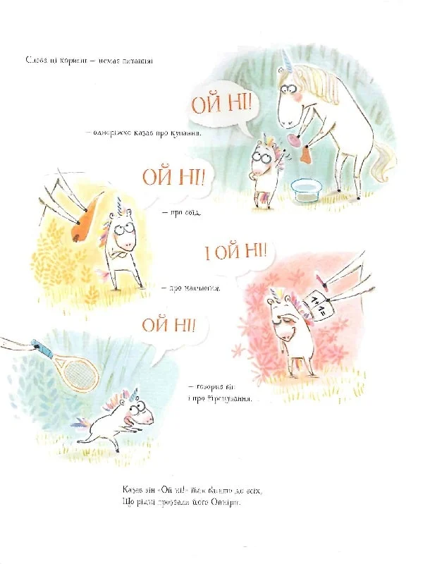 У далекій-далекій Країні Мрій, де в небі літають хмари з цукрової вати, а під деревами росте хрумке печиво, у родині однорогів народився незвичайний малюк. Про що б його не питали, він завжди відповідав: «Ой ні!» І зрештою всі стали звати його Ойнірогом. Якогось одного дня, втомившись від родичів, що весь час говорять у риму і дорікають за поганий настрій, Ойніріг вирушає в Нікуди. По дорозі він зустрічає єнота Що-Щокуна, який постійно недочуває (або вдає, що недочуває), собаку Ішобаку, якому на все начхати, і королівну Навпаківну. Ці четверо, незважаючи на свою впертість, стають чудовою командою, адже сприймають одне одного такими, як вони є. А ще навіть впертюхам веселіше, коли поруч є справжні друзі.