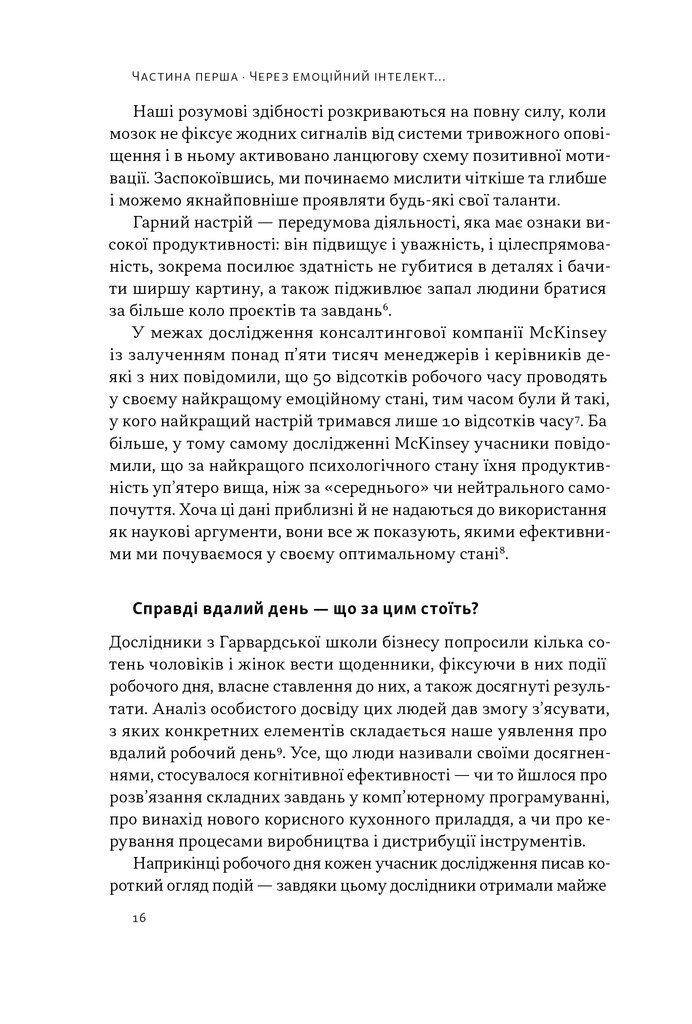 Ця книжка ґрунтується на дослідженнях, де сотні людей описували внутрішній механізм того, як створюють собі продуктивний день. Деніел Ґоулман і Кері Чернісс показують, як розвиток емоційного інтелекту стає ключем до здорової продуктивності, кращої комунікації та емпатичного лідерства, сприяє ефективності команд та інноваційним проривам, збільшує адаптивність і гнучкість людей та організацій у стресових ситуаціях.
