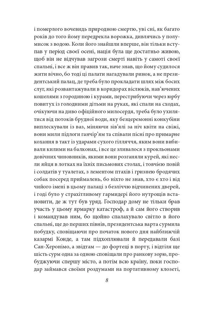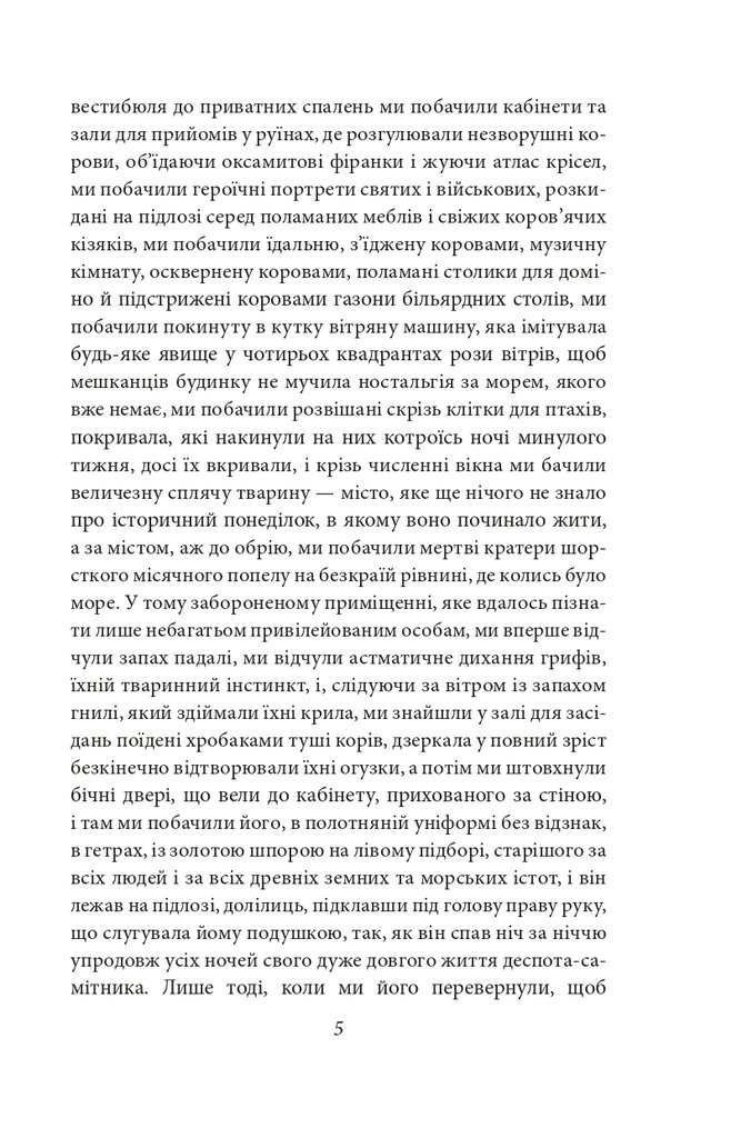 Роман «Осінь патріарха» (1975), над яким Ґабріель Ґарсія Маркес працював понад сім років, — це викладена в алегоричній формі історія диктатора, що десятиліттями тримав свою країну в атмосфері страху. Події відбуваються в умовній латиноамериканській державі, але образ головного героя збірний — у ньому можна упізнати риси багатьох диктаторів різних епох і країн. Його ім’я невідоме, як і його вік; неосвічений, жорстокий, він панічно боявся змов і замахів, тому мав кількох двійників і час від часу змінював уряд... Проте уникнути смерті йому все одно не вдалося...