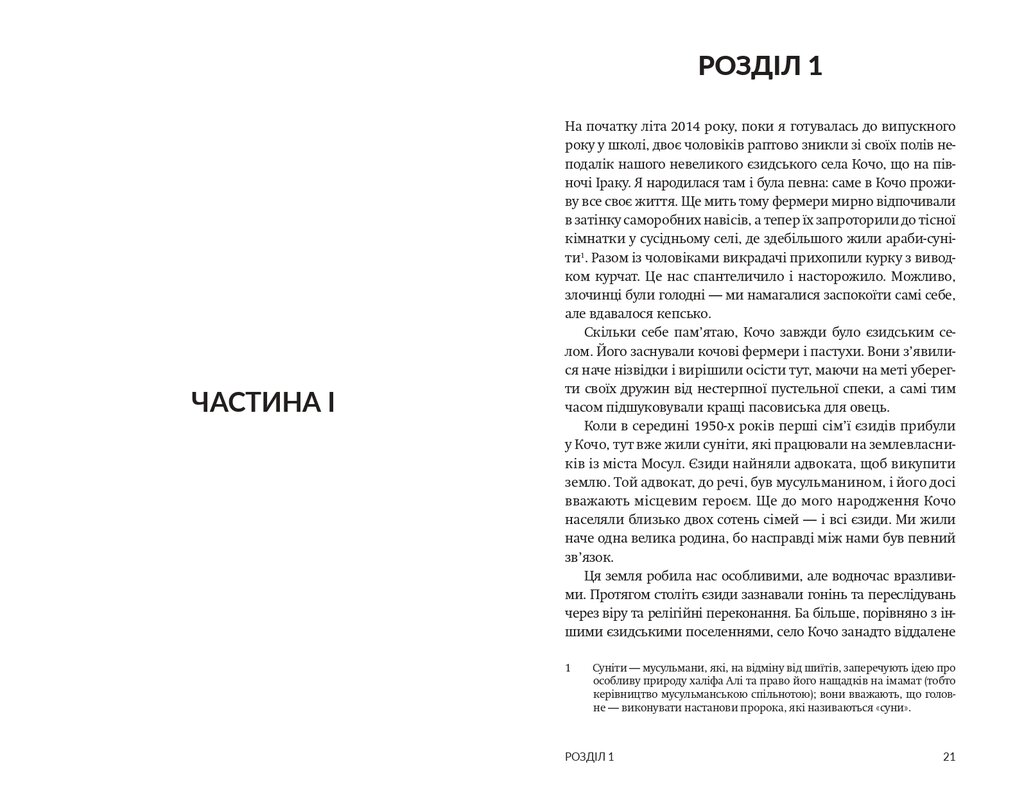 Надя зростала в Кочо, невеликому селі на півночі Іраку, в спільноті єзидів, що жили тихим, спокійним життям. Вона мріяла бути вчителькою історії або ж відкрити власний салон краси, але 15 серпня 2014-го всі її мрії обернулися на попіл. Бойовики Ісламської держави вдерлись у Кочо, страчуючи чоловіків, що відмовлялися прийняти іслам, а також жінок, які видавались надто старими для сексуального рабства. Ісламісти вбили шістьох Надиних братів, потім її матір, а саму Надю відвезли до Мосула, де разом із тисячами інших дівчат-єзидок вона стала рабинею ІДІЛ.