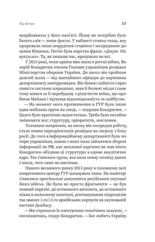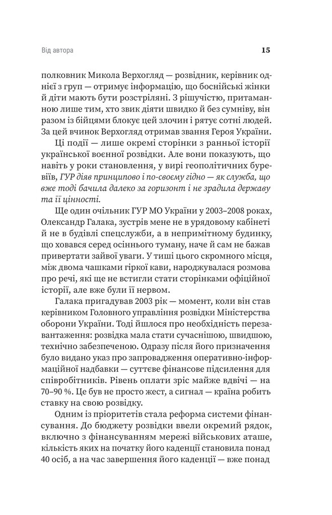 То якою є воєнна розвідка України зсередини? Яким було її становлення та розвиток? Які таємниці живуть у кабінетах ГУР? На ці та інші запитання читач знайде відповіді в історіях, що приховані за обкладинкою.