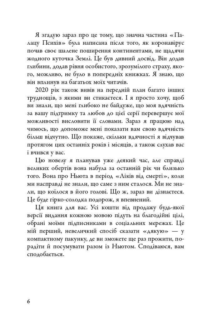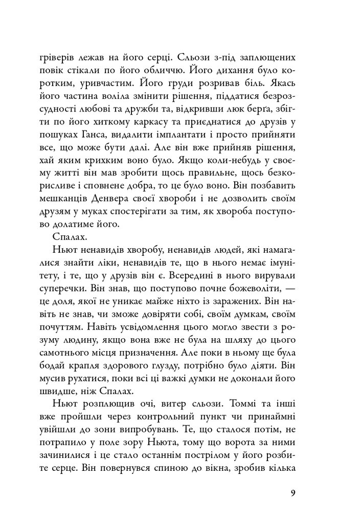 Заражений вірусом Спалаху, Ньют знає: його час спливає. Хлопцеві не хочеться, щоб друзі стали свідками його божевілля, тож він залишає записку і вирушає в самотню подорож крізь хаос інфікованого світу. Доля приводить його до Палацу Психів - останнього прихистку для тих, хто втратив надію. Але навіть там, серед руїн людської свідомості, Ньют зустрічає тих, хто здатен пробудити в ньому щось більше, ніж страх і біль. Молода мати Кейша та її син Данте стають несподіваним світлом у темряві, змінюючи його життя назавжди.