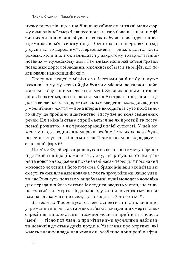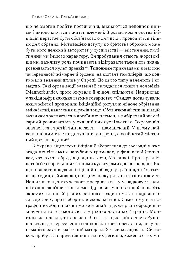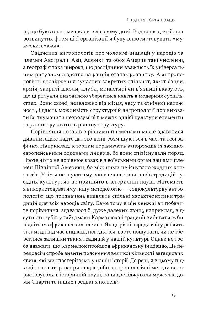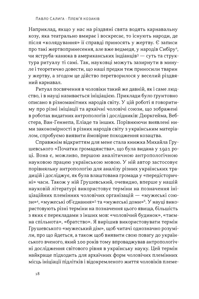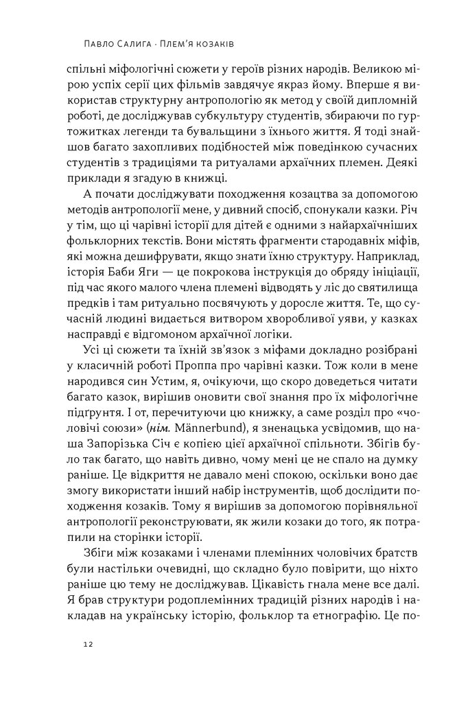 Павло Салига використовує інструменти порівняльної соціокультурної антропології, щоб дослідити походження українського козацтва. Він простежує тяглість від «племінної демократії» слов’ян та інституту віче у Київській Русі до унікального устрою Запорізької Січі, сучасних добровольчих батальйонів ЗСУ і навіть футбольних фанатських рухів. Використовуючи підходи Клода Леві-Стросса, Джозефа Кемпбелла, Еміля Дюркгейма та інших відомих дослідників, автор надає ключ до дешифрування архаїчної логіки, що стоїть за українськими культурними явищами та міфами.