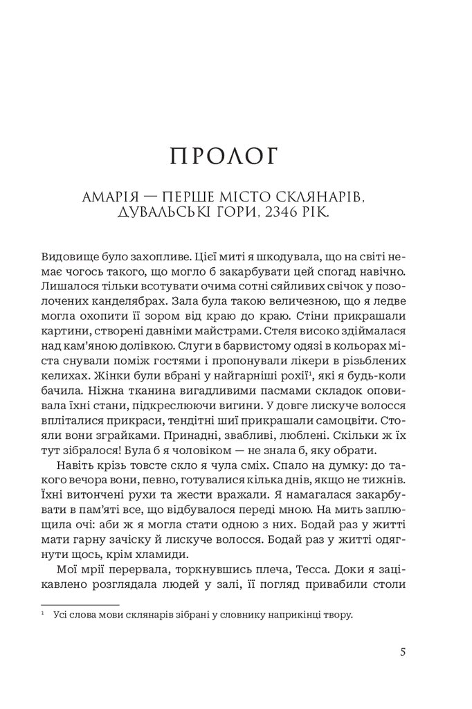 Після Великої війни світ змінився. На схід від гір, що колись називалися Уральськими, — мертва пустка. На захід — уціліла Європа. А на самому кордоні живе маленький народ майстрів та винахідників, що знайшли й опанували скляніт — дивовижний мінерал, який подарував усьому людству нову надію, і тільки своїм першовідкривачам — гірку долю невільників.