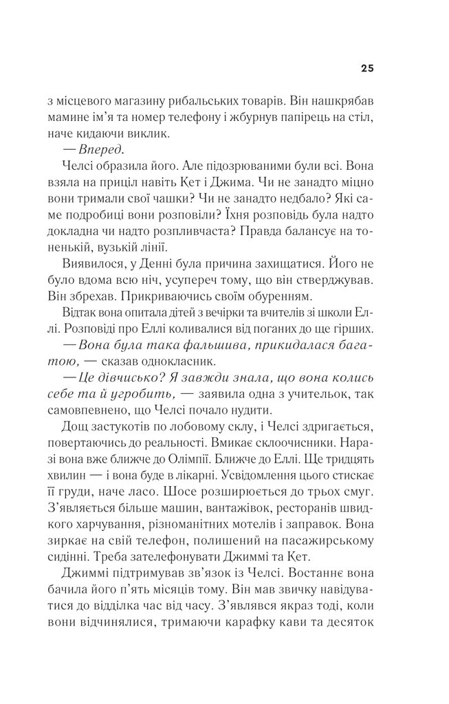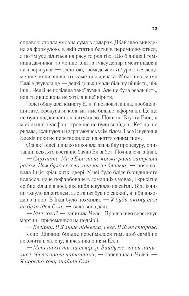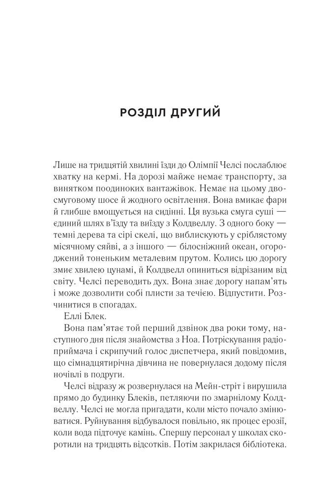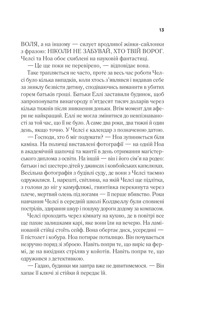 У теперішньому вона намагається розібратись у тому, що сталося з Еллі Блек. Тримаючись своєї захисної поведінки й замкнутості, вціліла затято мовчить. Слід полишити травмовану Еллі, але Челсі Калгун не здатна відпустити справу, адже повернення викраденої дівчини — промінь надії для всіх. Детективка роками розслідує жорстокі злочини. Та цього разу правда може бути заважкою навіть для Челсі