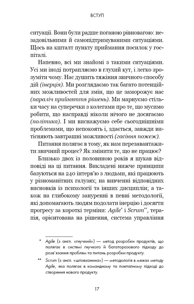 Часом лише одна непрацююча деталь заважає успішно функціонувати усьому механізму. Як визначити «слабку ланку» в роботі компанії, організації чи навіть у повсякденному житті? Як провести «ремонт» так, аби не зупиняти процесу роботи? Як припинити боротися з вітряками й точно визначити, куди докладати зусилля, щоб зробити бізнес ефективнішим? Ден Хіт, автор бестселерів із бізнесу, у своїй новій книзі пропонує стратегію, яка допоможе зрушити камінь «стабільності», що зупиняє ваш розвиток, знайти точки впливу, на які можна натиснути з невеликим зусиллям і отримати велику віддачу, а також пояснює, чому часом очевидно ефективні речі не працюють, а неефективні приносять колосальні результати.