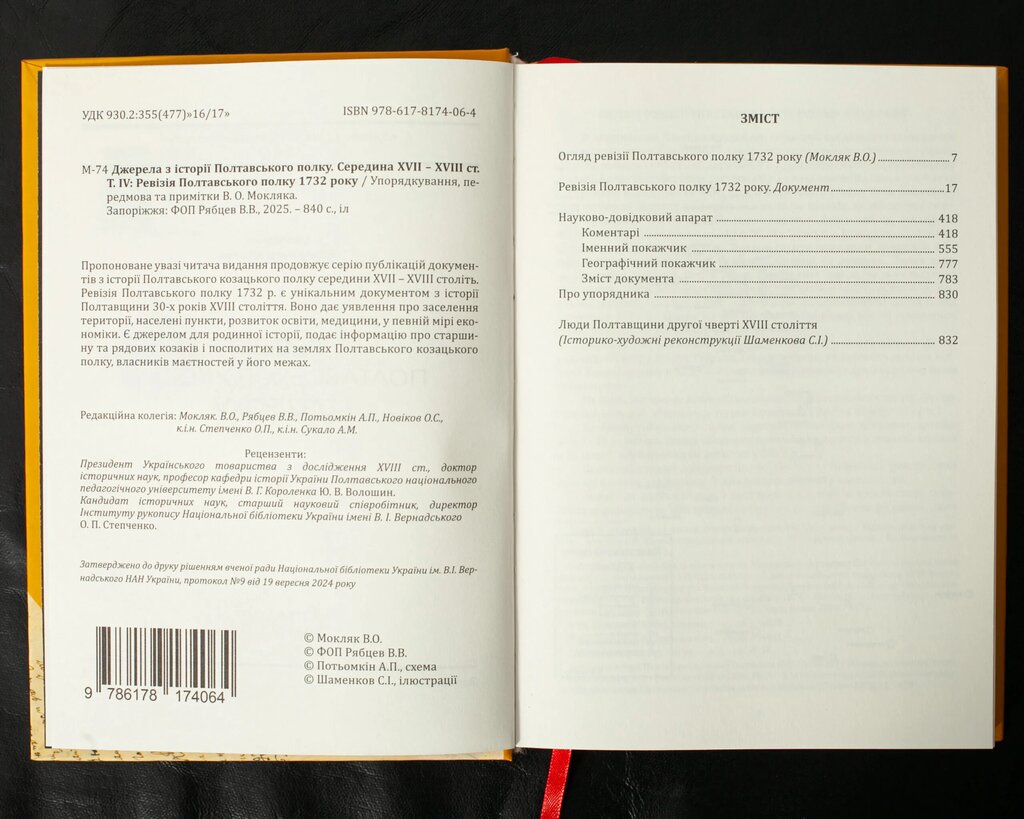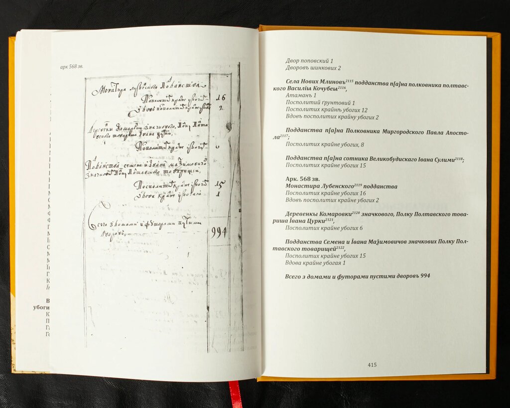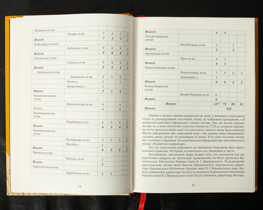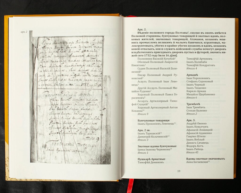 Книга містить один з найповніших переписів Полтавського полку за 1732 рік, що включає списки імен-прізвищ козаків, старшини, міщан, посполитих селян та ін. станів тогочасної Гетьманщини.