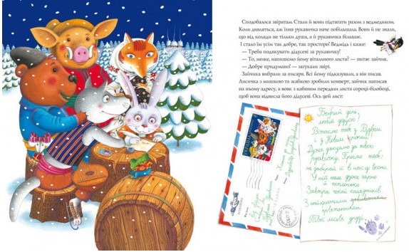 З казки про рукавичку починається наше дитинство. Мишка-шкряботушка, жабка-скрекотушка, зайчик-побігайчик, лисичка-сестричка, кабан-іклан, ведмідь-набрідь — ці неперевершені герої тішили ще твоїх пра-пра-пра-пра-пра-пра-пра-дідусів і бабусь, і неодмінно ще тішитимуть твоїх пра-пра-пра-пра-пра-пра-пра-внуків і внучок. А ця книжечка розповідає про щасливу різдвяну пригоду, яка трапилася з твоїми улюбленими героями після того, як вони оселилися в рукавичці.
