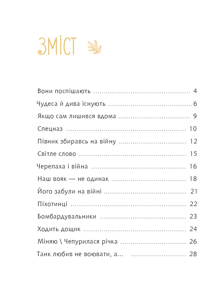 Нова книжка одного з найуславленіших сучасних українських поетів Григорія Фальковича — взірець того, як розмовляти нині з дитиною про війну. Ці щемкі, глибокі, мудрі й неодмінно життєствердні рядки сповнені чистої віри в Україну, людину, майбутнє.