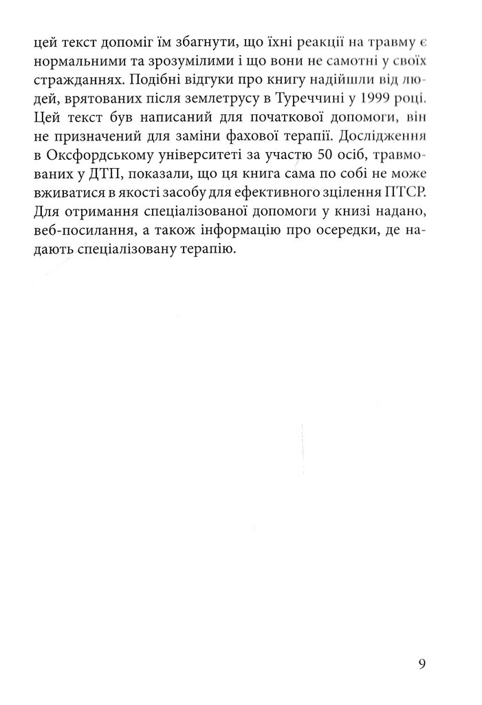 Ця книга написана для того, щоб поділитися знаннями і практичними порадами з тими, хто пережив травму. Авторка, спираючись на свій багатолітній психотерапевтичний лосвід, обгрунтовано, просто і з неймовірною пошаною до людських переживань розповідає читачеві, що саме відбувається під час травми та що потрібно робити, аби зцілитися від наслідків травматичних подій. Книга стане корисним посібником для осіб, що пережили травматичний досвід, а також для їхніх близьких та широкого кола зацікавлених читачів.