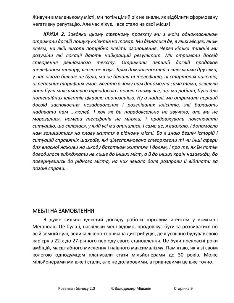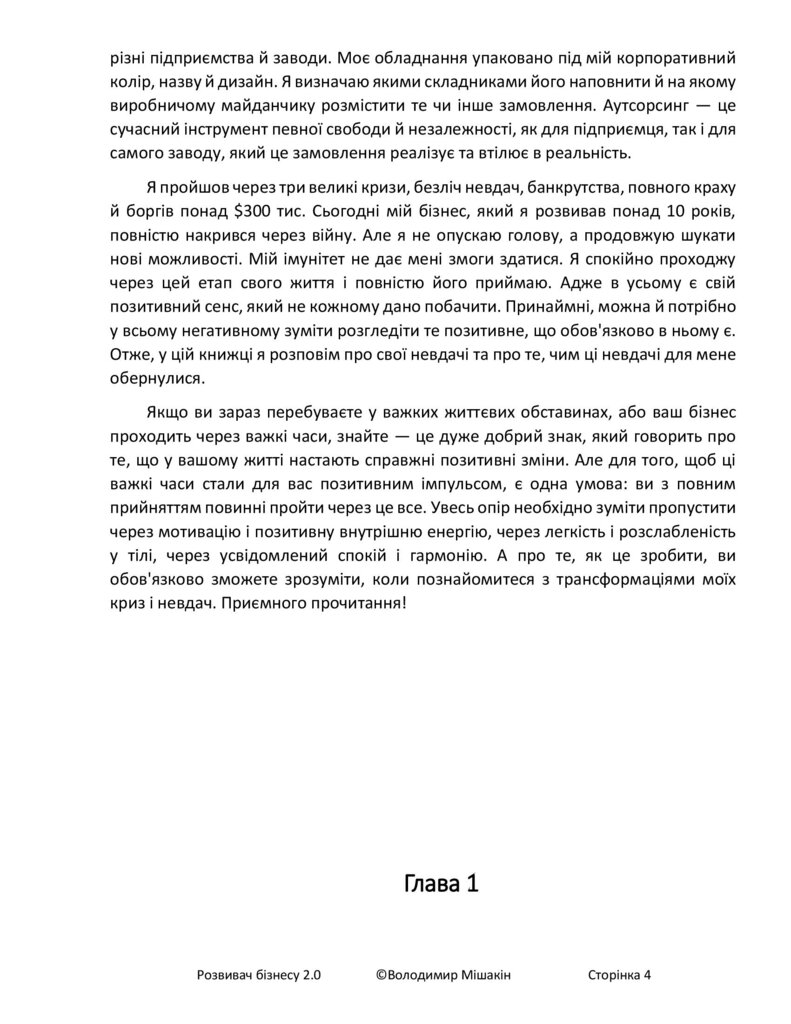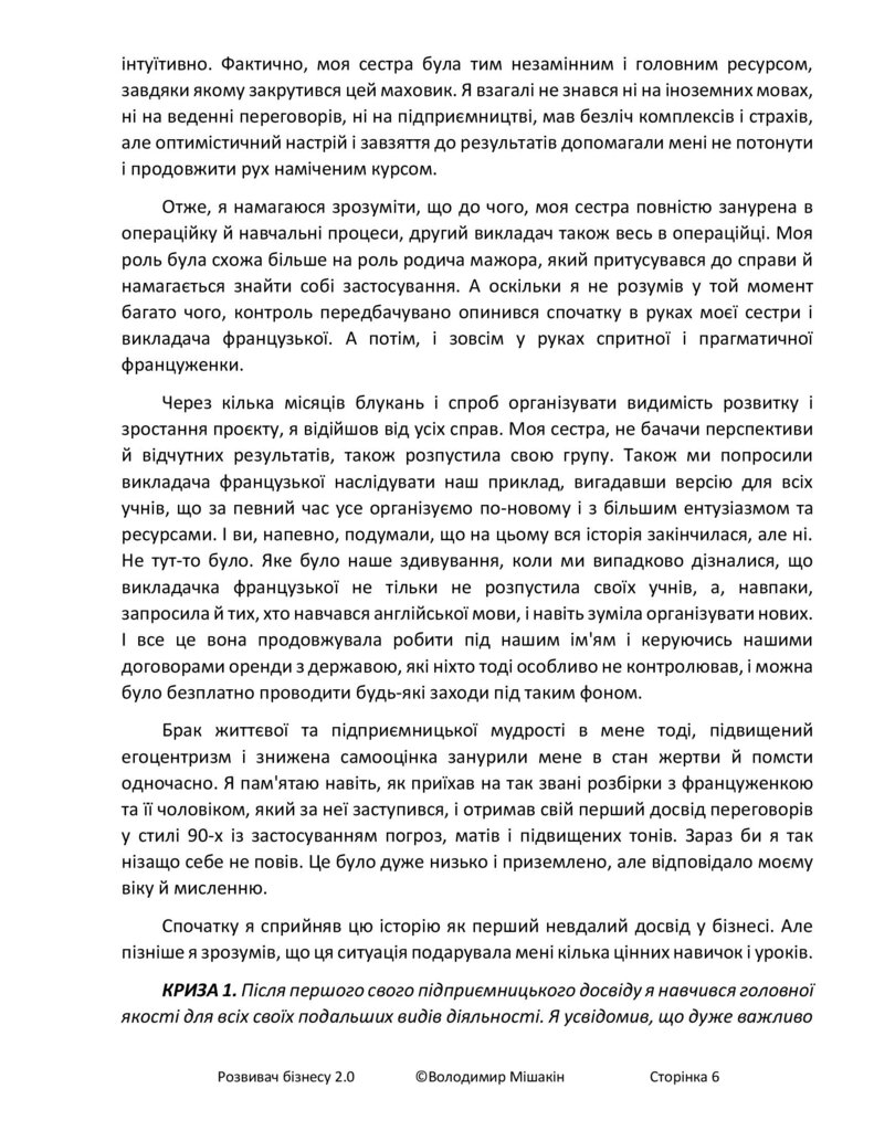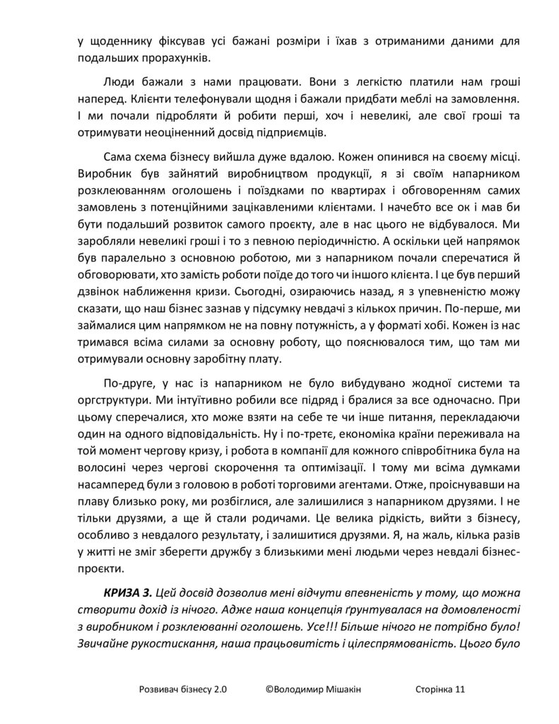 Якщо вам здається, що ви потрапили в дуже важку й заплутану ситуацію, отже, ви рухаєтеся у правильному напрямку. Якщо ви ставите запитання: «Чому це сталося саме з вами?» — це ще раз підтверджує, що ви на правильному шляху, йдете саме туди, куди треба. А якщо вам здається, що все звалилося остаточно й безоплатно і що ви перебуваєте в найглибшій ямі й не уявляєте, як звідти вибратися, отже, ви точно там, де маєте бути. Бо мистецтво підприємництва неможливе без помилок і невдач. Саме важкі кризові ситуації змушують підприємця знаходити нові рішення та еволюціонувати. Спокійне та передбачуване середовище є зоною комфорту та зупинкою в можливості прориву та зростання. Саме кризи та важкі часи є паливом до зростання як самого бізнесмена, так і показників його справи.