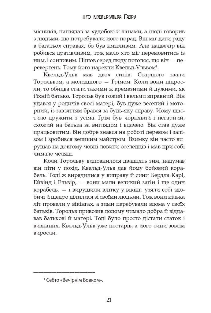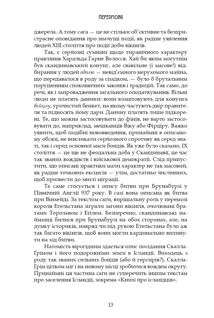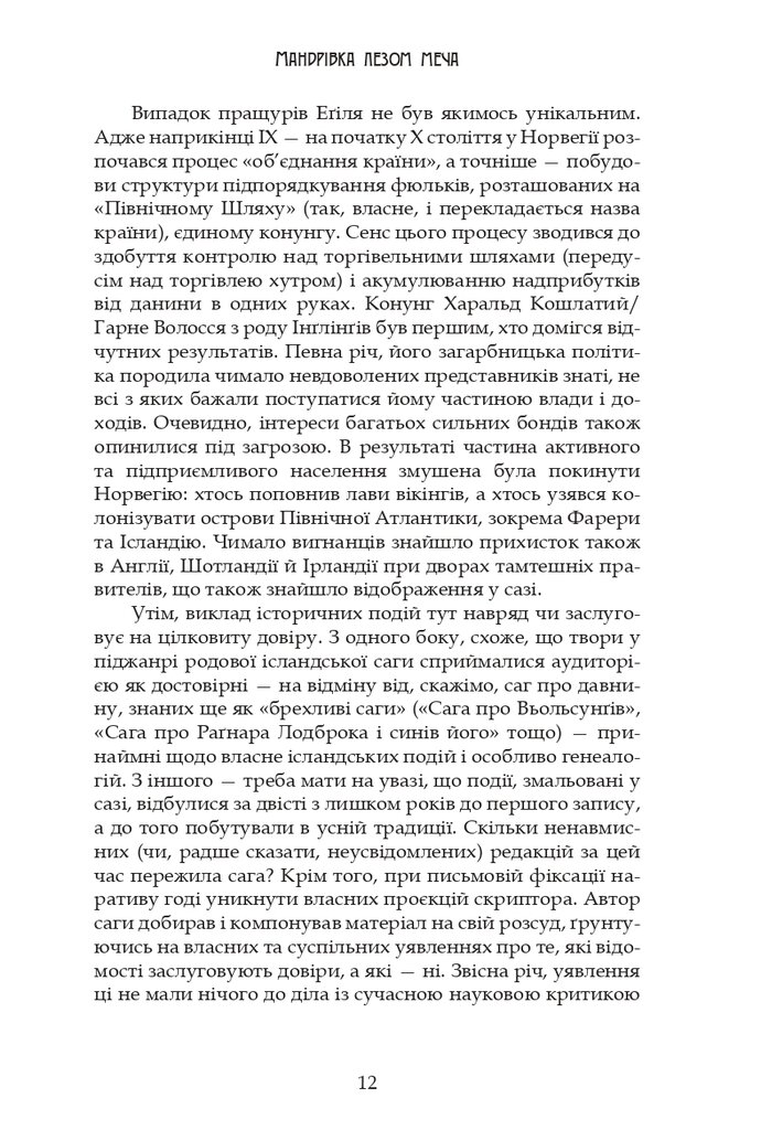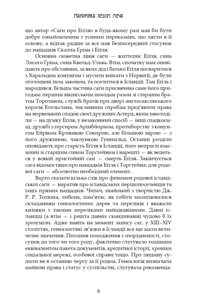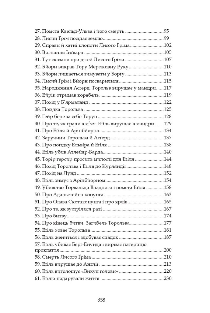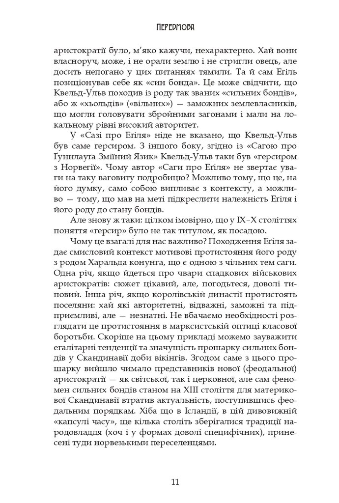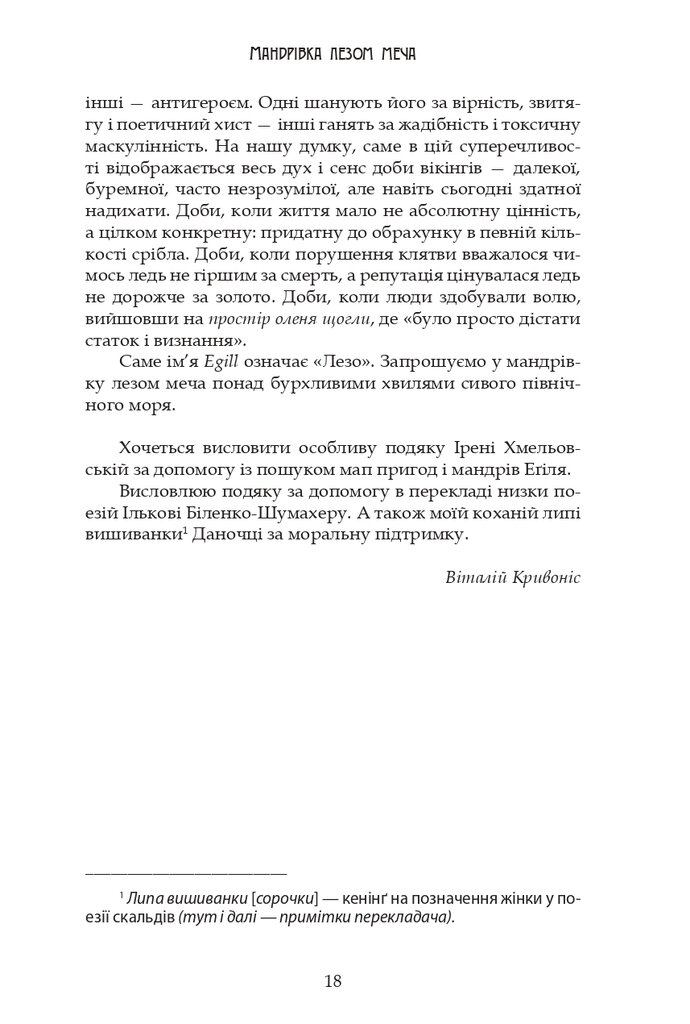 Цей текст – ключ до розуміння усієї сагової літератури, текст-перепустка, зрештою, текст-загадка, адже він і сьогодні викликає палкі дискусії серед дослідників. А деякі вірші Еґіля, які ви знайдете у цьому виданні, дійшли до вас, дбайливо перекладені, крізь більш ніж тисячу років – із середини Х століття.
