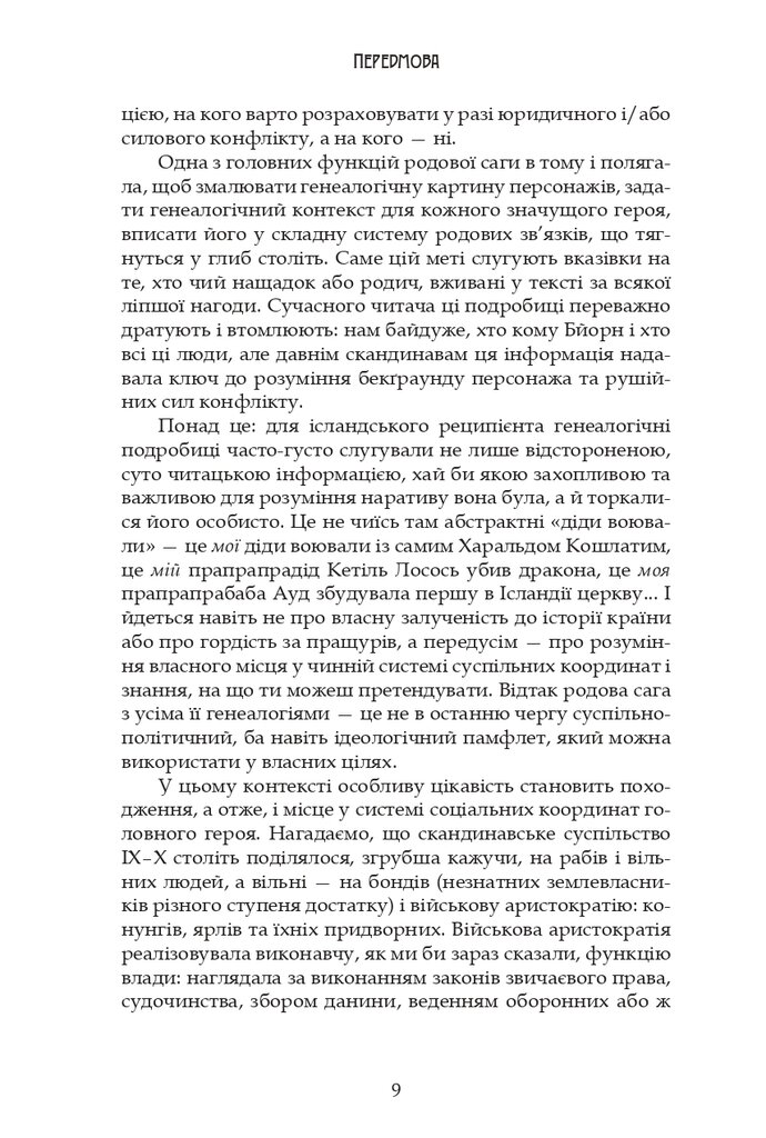 «Сага про Еґіля сина Лисого Ґріма» – не просто класика ісландської саги. Це взірець архаїчної культури середньовічної Скандинавії, який донесли до нас як церковні, так і світські діячі, що присвятили себе роботі з упорядкування та запису саг, події яких відбувалися у IX–XII століттях, і не лише в Ісландії, а й ледь не по всій північній півкулі.