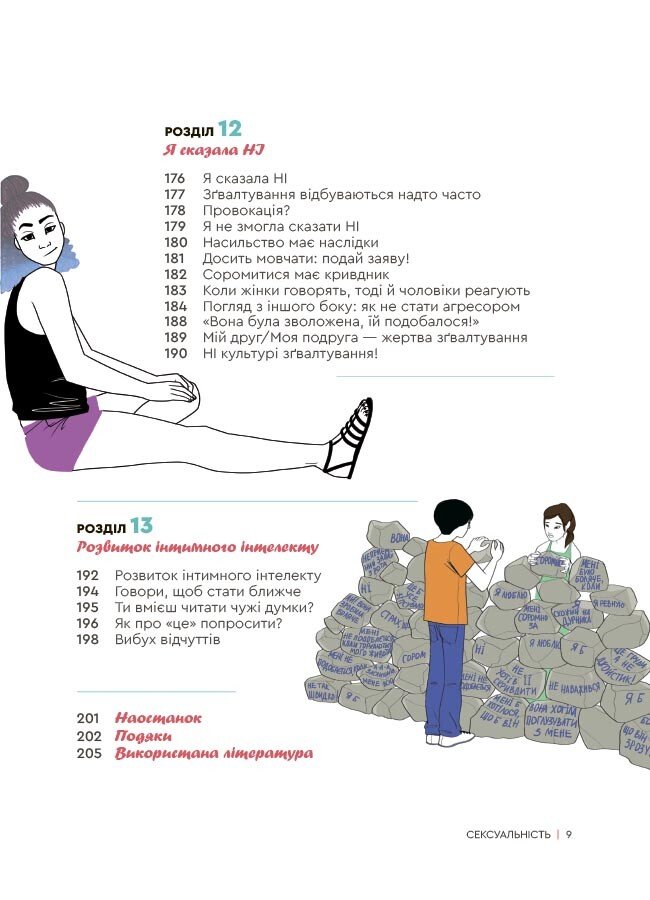 Це книжка про справжню сексуальність — таку, де є ніжність, взаємоповага та радість від близькості. Тіло, кохання, спілкування, бажання, сексуальна орієнтація, перший раз, згода, задоволення, порно, зґвалтування — це видання без табу й у доступній формі пояснює все, що варто знати про сексуальність та стосунки.
