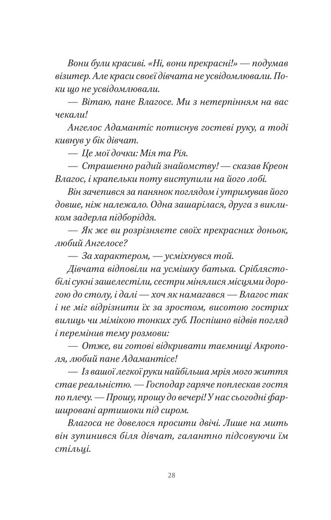 Віро вирушає з Києва до Афін, якими марить. Та головна ціль — зазирнути в очі відомому письменнику. Дівчина переконана, що він привласнив її недописаний роман. Та з кожним кроком омріяна Греція перетворюється на пастку. Віро снить про елевсинські містерії, чує гімни забутим богам і бачить те, чого не мало б бути. «Еврідіка мусить померти», — каже їй випадкова жінка на базарі. «Еврідіка мусить померти», — написано кров’ю на будинку під Акрополем. Серце підказує, що вона не випадкова героїня в цій пригоді.