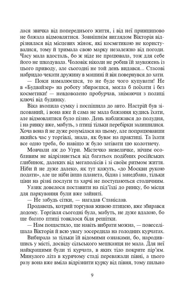 Цей соціально-психологічний роман — іще один ракурс осмислення сьогодення. Авторка захоплююче і точно відтворює життєвий шлях типового представника покоління, яке формувалось у тисяча дев’ятсот вісімдесятих, намагалось і вижити, й нажити статки в дев’яностих... Непросте і трагічне становлення українця, який волею обставин опинився тоді в Москві. Нелегкий вибір постав перед ним нині...