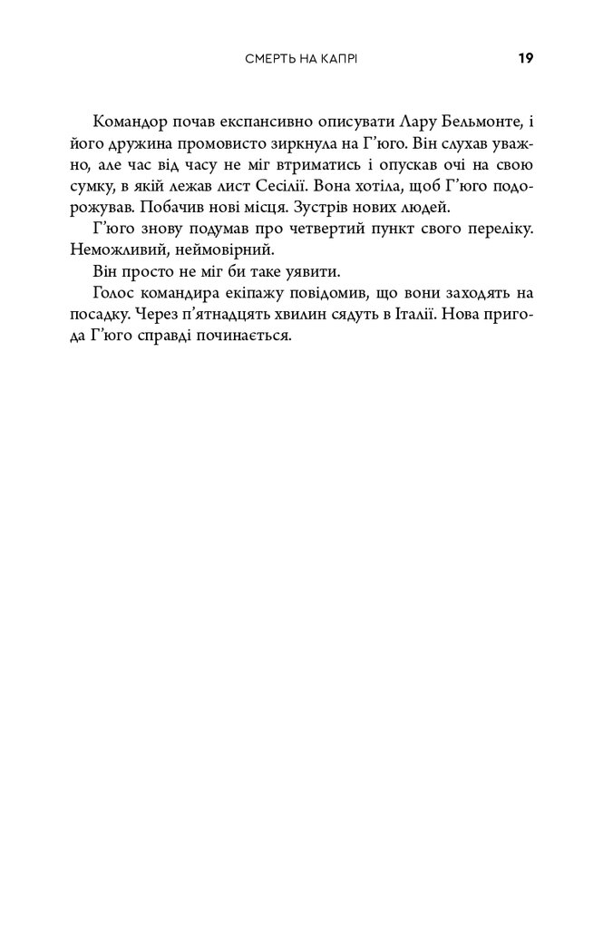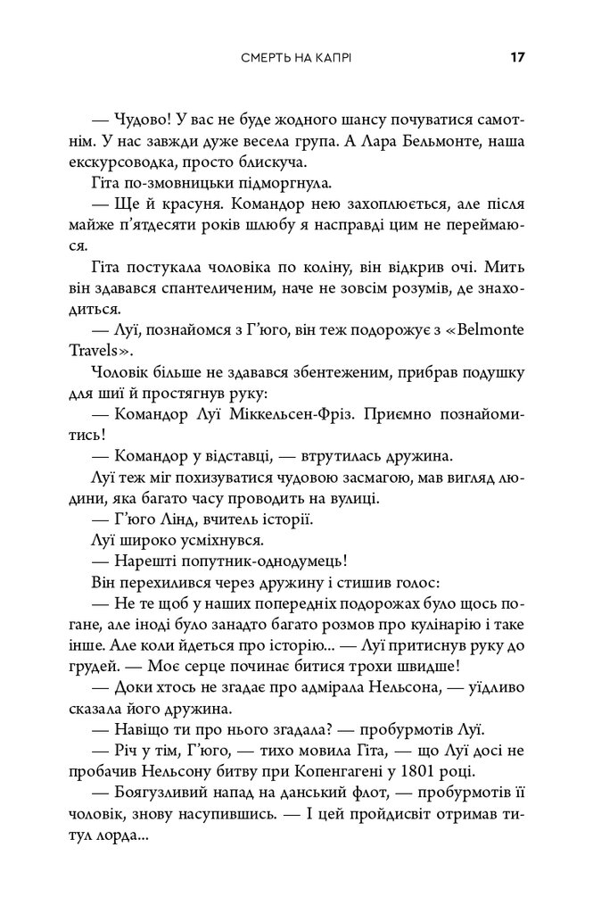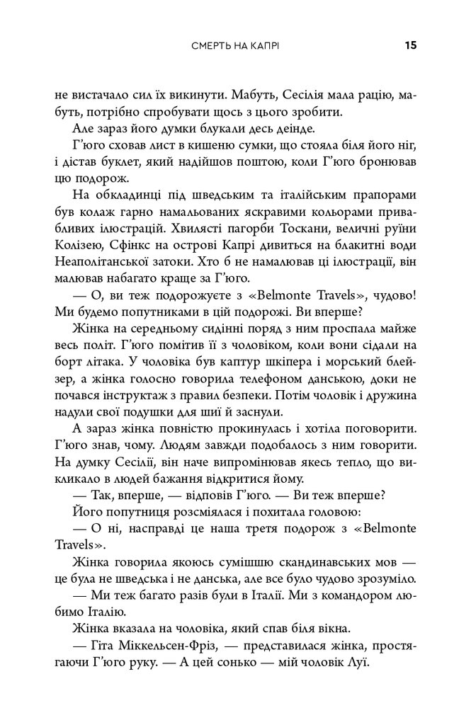 Вчитель історії Г'юго їде в подорож на Капрі, присвячену культурі й кулінарії, разом з групою інших мешканців Півночі. Організатор подорожі - компанія "Belmonte Travels", якою керує досвідчена Лара. Настрій чудовий, група насолоджується всім, що пропонує рай. Але на чарівний острів падає тінь, коли у морі біля підніжжя сумнозвісної скелі Сальто-ді-Тіберіо знаходять тіло. Хто цей покійник і чому в його кишені - буклет "Belmonte Travels"? Невже в рай прокрався змій, чи, можливо, хтось з екскурсантів прилетів на Капрі зовсім не для того, щоб насолоджуватись стравами й краєвидами, які пропонує острів?