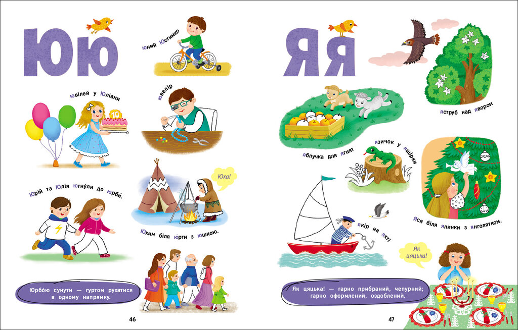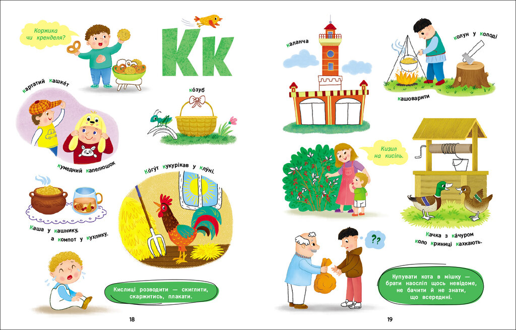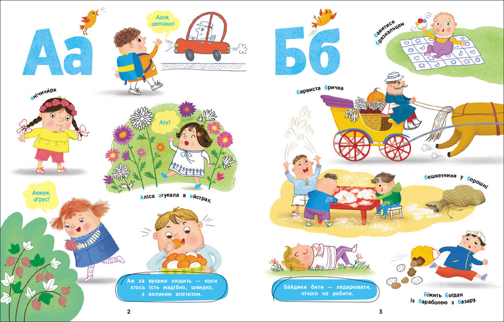 Перед вами унікальна абетка, адже в ній зібрано дуже цікаві та колоритні зразки української лексики: різноманітні слова, словосполучення, речення і навіть народні вислови на певну букву. Завдяки їм дитина не лише познайомиться з літерами, а ще й розширить свій світогляд та збагатить словниковий запас.