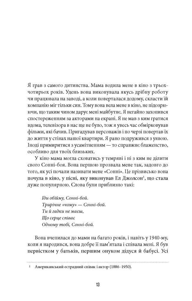 «Сонні-бой» — це мемуари людини, якій вже нема чого боятися або приховувати. Він щиро розповідає про великі ролі, зіркові дуети і важливі стосунки, а також про тонку грань між творчістю і комерцією. Але головна тема книги — кохання і відданість. Аль Пачіно пощастило закохатися у своє ремесло, коли він ще не мав уявлення про його мирські принади, і це кохання триває донині. Ось що робить його життя визначним.