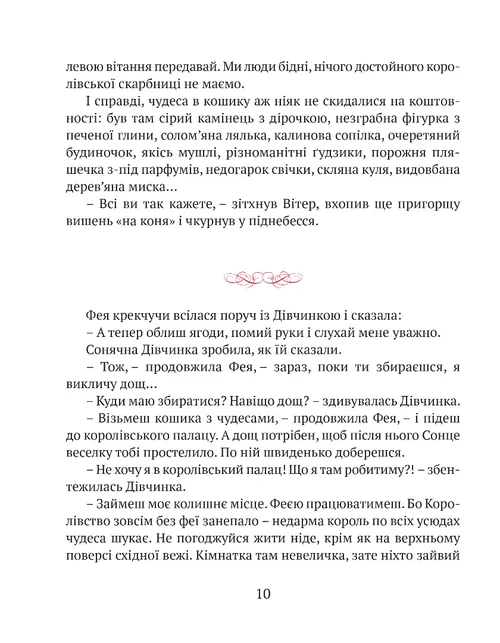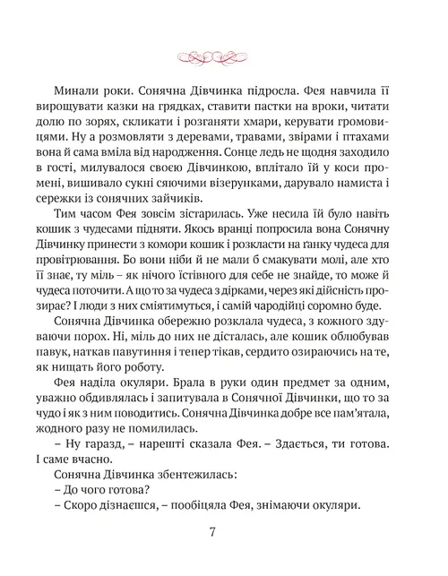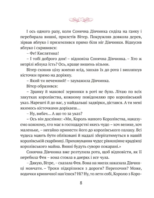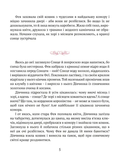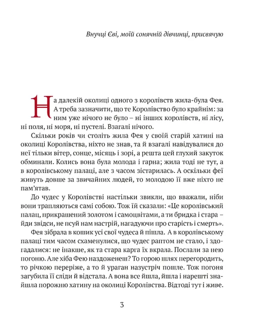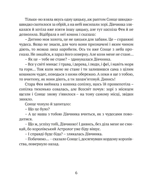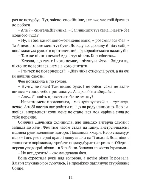 Старенька Фея почувається зайвою і покидає королівський палац. Живе в маленькій хатинці й виховує Дівчинку, яку їй подарувало Сонце. Але чи може Королівство обійтися без чудес? Довкола безлад, руїни і посуха. Король усіляко запобігає ласки в сусіднього тирана, аби той не розпочав війну. Чи здатна Сонячна Дівчинка замінити стареньку Фею і взяти на себе відповідальність за Королівство? Про це ви дізнаєтеся з казки, в якій, окрім Сонячної Дівчинки, Феї та Короля, живуть Принц, Королева, Павучий Король, сусіди і придворні, Сонце й Вітер, звірі та птахи.