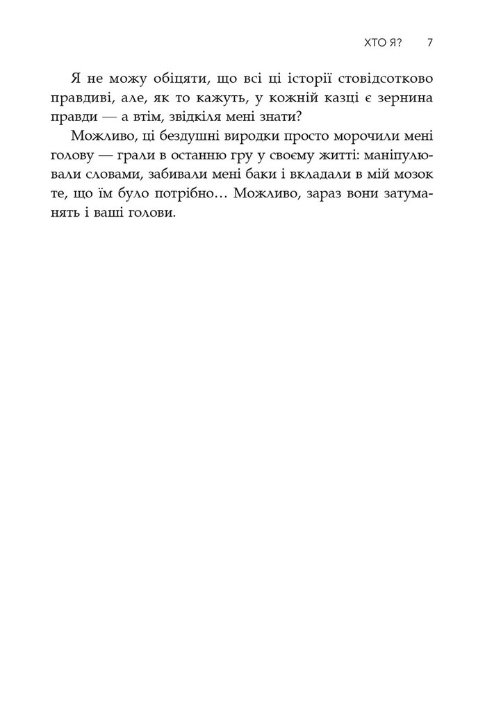 У цій книжці є ненормативна лексика. А деякі історії можуть стати поштовхом до якихось дій, які вам буде складно стримувати самотужки, адже це сповіді серійних вбивць, душевнохворих, психопатів, душі яких сповнені болі.