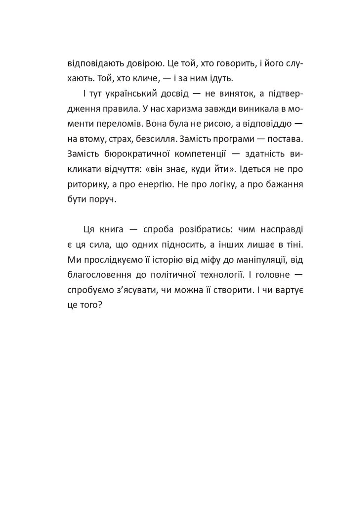 Нова книга І. Гриніва — спроба розібратись: чим насправді є ця сила, що одних підносить, а інших лишає в тіні. Автор прослідковує її історію від міфу до маніпуляції, від благословення до політичної технології. І головне — пробує з’ясувати, чи можна її створити. І чи вартує це того?