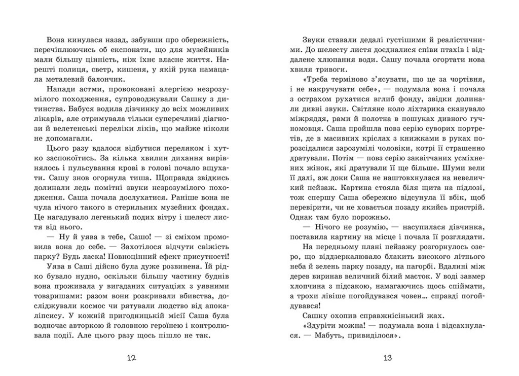 Дванадцятирічна Сашка ніяк не може вписатися у «звичайне» життя. Її ваблять не ігрові майданчики, а музеї, стародавності й таємничі картини І не дарма: одна з них виявляється справжнім порталом — і затягує дівчинку в минуле, аж у 1842 рік. І ця епоха, здається, підходить дівчинці значно більше. Тут, де міфи живуть поруч з історією, Сашка приятелює з місцевими однолітками, знаходить з ними пригоди й проблеми та відкриває свої чарівні здібності! У цьому місці вона має особливу місію.