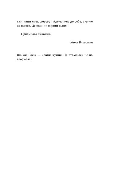У своїй новій книжці блогерка й авторка книжки «Матера вам не наймичка» Катя Бльостка відверто ділиться власною історією, починаючи від посиденьок з подружкою під дискотекою та перших побачень і до сварок із чоловіком й усвідомлення власних потреб.