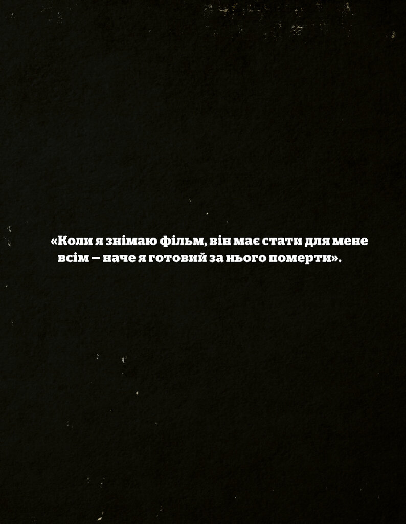 Коли я знімаю фільм, він має стати для мене всім — немов я ладний за нього померти.
