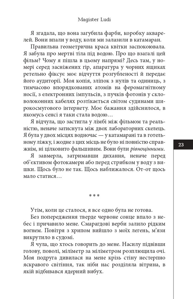 Світи, описані в цих оповіданнях, дуже близькі нам, вони існують поруч із нашим власним світом, та все ж відрізняються від нього. Десь на зміну кіно прийшли фантазії режисерів, які в режимі реального часу транслюються глядачам у свідомість, занурюючи тих у інші, глибоко особисті реальності. Десь знайома нам історія зазнає коректив, холодна війна точиться між іншими блоками, і цивілізація ще більше наблизилася до глобальної катастрофи. А десь людині протистоїть не людина, а саме небуття, що насувається, поволі захоплюючи й розчиняючи в собі все знайоме і звичне.