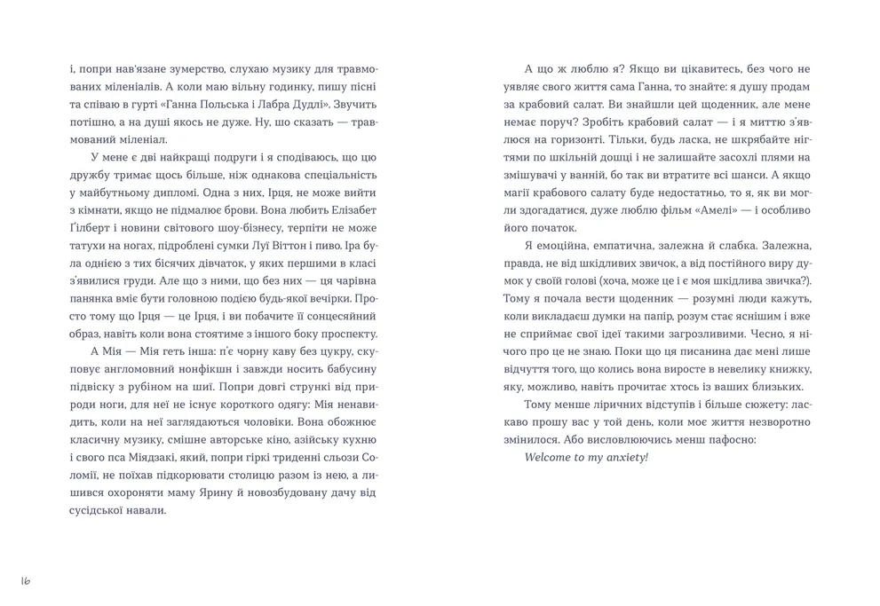 Разом із героїнею відверто щирої дебютної повісті солістки гурту Tember Blanche ти вирушиш у непрості пошуки власного «я» — і ніколи про це не пожалкуєш.