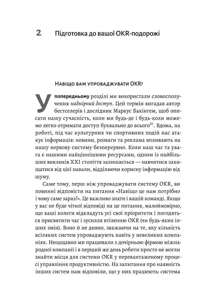 Переклад українською книжки Пола Нівена та Бена Ламорта виходить саме в такий час, коли країна потребує нових підходів до управління. OKR — це не лише про державу. Для того щоб увійти до тридцятки найкращих країн за рівнем ВВП, кожен український бізнес має зрости вдесятеро. Ця система управління допомагає бізнесам будь-якого розміру рухатися швидше, зменшувати хаос, фокусуватися на найважливішому й масштабуватися навіть у кризу. Вона дає відповідь на прості, але фундаментальні запитання: куди ми йдемо, як вимірюємо прогрес і що насправді створює цінність для клієнта. Команди отримують ясність цілей і фокус, швидший розвиток продуктів.