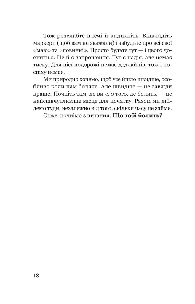 Цю книгу обов'язково варто прочитати всім, хто прагне навчитися долати емоційний біль, тривоги та травми.