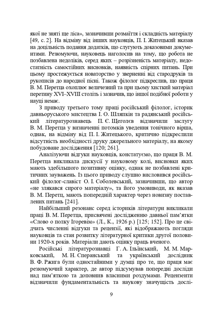 Зважаючи на високий рівень теоретичного опрацювання чинників, що яскраво позначають культурологічну складову творчості видатного вченого-енциклопедиста помежів’я ХІХ–ХХ ст. В. М. Перетца, автори монографії спиралися на специфічні ознаки історико-культурних етапів, міжнауковість, регіоніку, діалогізм, персоналізацію як структурний елемент біографічного методу, що дозволило визначити його непересічну роль у розвитку європейської гуманістики і культурології означеного періоду.