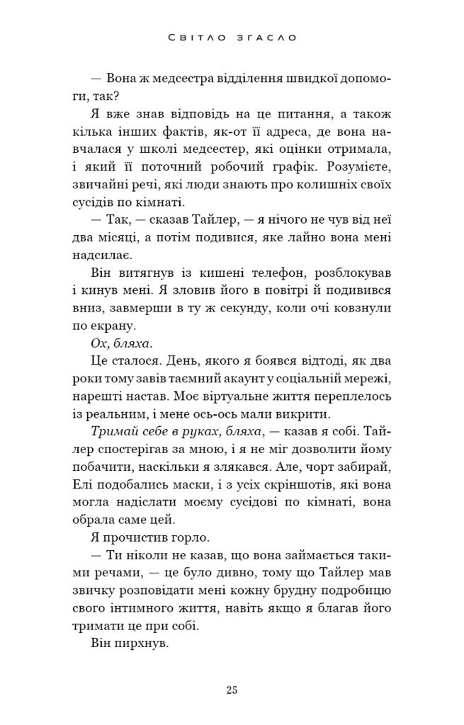 Я хочу когось із душею, чорною, як ніч. Когось, хто спалить заради мене цілий світ і не втратить через це ані хвилини сну. Медсестра відділення травматології Елі втікає від своїх важких робочих буднів, захоплюючись у мережі чоловіками в масках. Для неї ніщо не могло перевершити фантазію про те, як її улюблений татуйований чоловік у масці полює на неї. Але вона навіть уявити не могла, що одне п’яне повідомлення перетворить ці мрії на реальність... Я хочу те, чого не хоче більшість людей, прагну темряви та розпусти замість світла і любові. Джош усе своє життя уникав уваги, але його онлайн-особистість — зовсім інша історія. Ночами він публікує відеопастки в масці для своїх мільйонів прихильників, аж поки одна підписниця не привертає його увагу — Елі. Разом Елі та Джош втілюють у життя свої найтемніші фантазії, не підозрюючи, що Елі привернула увагу когось із набагато зловіснішими намірами. Коли Джош перетворюється з хижака на захисника, він мусить запитати себе, як далеко готовий піти заради жінки, без якої не може жити.