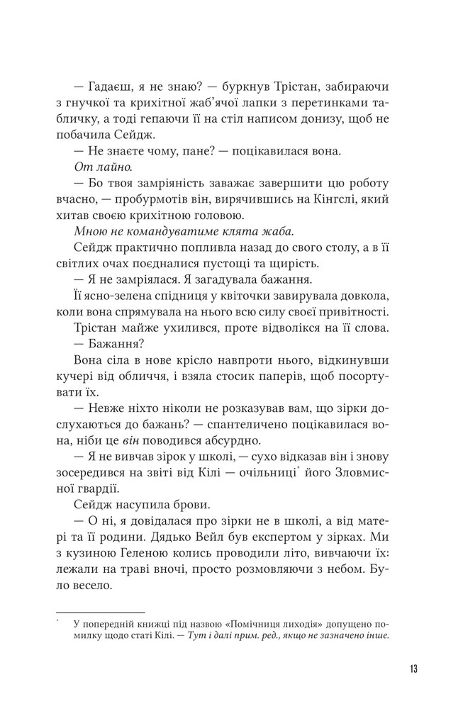 Поміж Еві й Трістаном вирують справжні пристрасті. Кожна взаємодія цих двох спалахує невимовленою жагою, а тому й захоплює читачів. Ці герої найяскравіше сяють серед дійових осіб, однак кожен персонаж маєтку — від жабеняти до дресирувальника драконів — вартують уваги та сповнюють книгу химерною і водночас офісною атмосферою. Хоч сюжет і розгортається в лігві Лиходія, роман відлунює вірою у перемогу добра й пошук світла серед зловісної темряви.