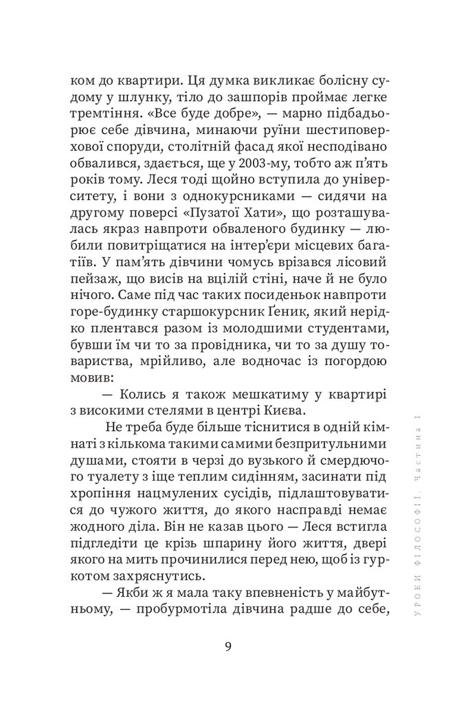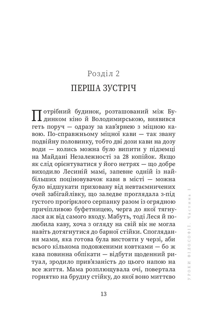 Молода киянка Леся Вишня працює в одній з київських бізнес-шкіл, де пише про рецепти успіху і мріє про свій. Та несподівана зустріч із Сергієм Кримським змушує героїню переосмислити погляди й цінності. У старій квартирі, де самотній філософ розповідає їй історію свого життя й ділиться думками про те, як все влаштовано, світ зупиняється й набуває інших вимірів і сенсів. Проте, крім пізнання істин, Лесі потрібно розібратися із власними стосунками, які стають дедалі токсичнішими.