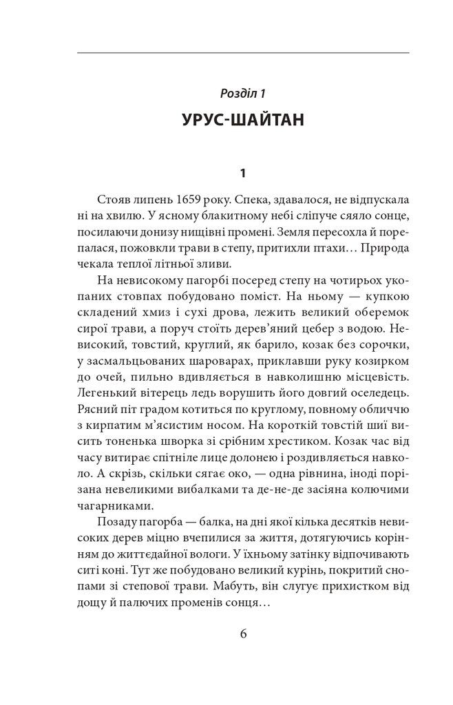 Події роману охоплюють другу половину буремного 1659 року. У центрі оповіді — легендарний отаман Іван Сірко, якого турки прозвали Урус-шайтаном за його непереможність і відчайдушну хоробрість. Козацька Україна після Конотопської битви балансує на межі прірви. У Гетьманаті визріла змова проти гетьмана Виговського. Погіршує ситуацію і напад Сірка на ногайські степи Буджаку, який змушує союзницьке українсько-татарське військо відмовитися від походу на Москву. На сторінках твору вирують захопливі пригоди, з’являються нові герої — відважний Ельмір-ага і його кохана Камелія, стосунки яких випробовує війна. А горда красуня Азіза, чия доля переплітається з головними подіями, сміливо кидає виклик обставинам і йде назустріч долі.