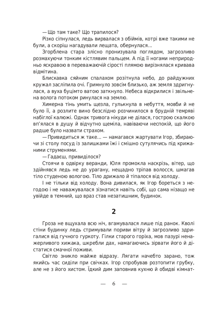 Зрештою терпець увірвався. Аби зберегти сім’ю, молодята на скромні заощадження придбали хатинку в селі. Тесть допоміг облаштуватися, здавалося б, життя налагодилося, ніщо більше не заважатиме сімейному щастю. Та першого ж дня на новому місці явився примарний образ старої з клюкою, яка їм погрожувала. Ймовірно, це було попередженням про майбутні негаразди