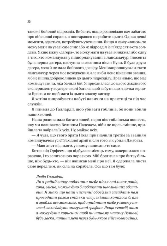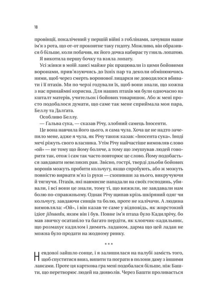 Доньки беруть до рук зброю — і так починається дорога головної героїні, всипана камінням страждань, жалю та болю втрати посестер і побратимів, які намагалися подолати ворога Протистояння гоблінам вимагатиме від світу численних жертв, а від Ґальви — рішучості, сміливості, непохитної віри у богиню смерті, а також підтримки Беллу й Далґати, величезних бойових птахів. Та чи не змінить юну воїтельку її невгамовне бажання крові й помсти?