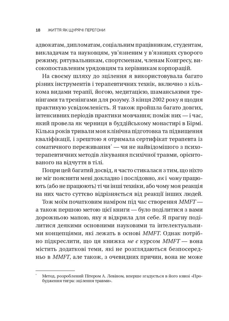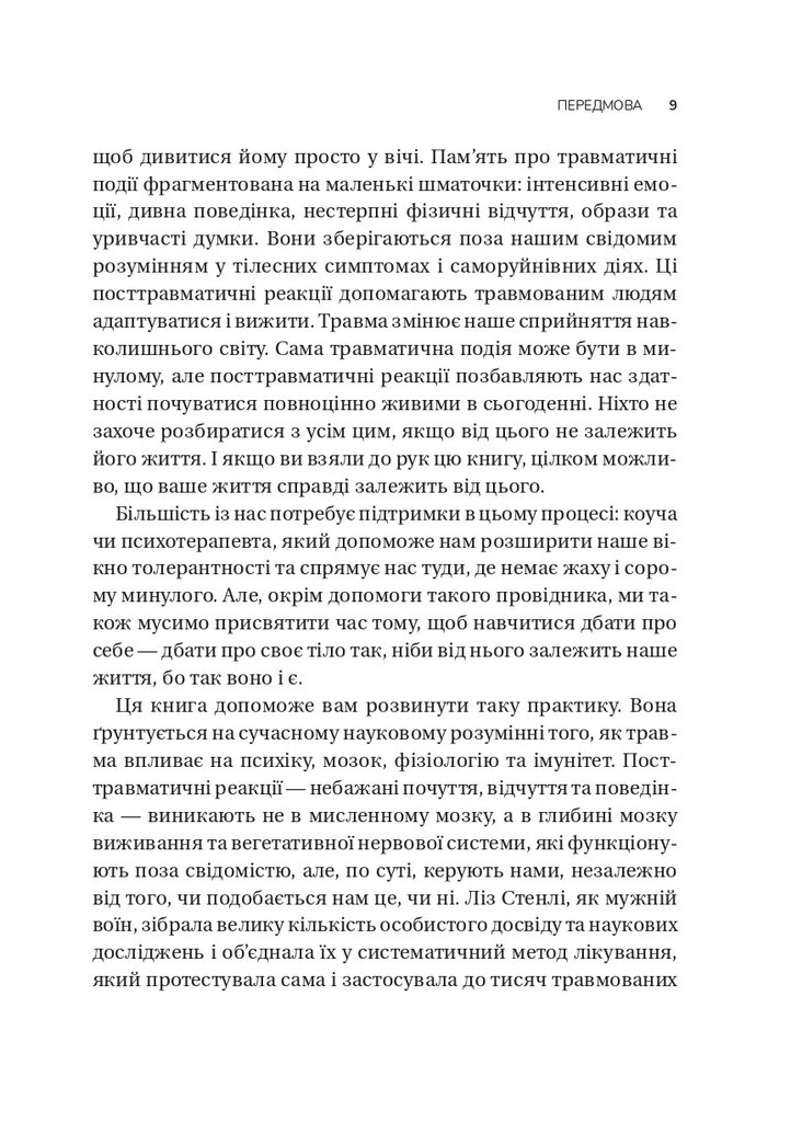 «Цю книжку обов’язково мають прочитати всі психотерапевти, а також ті, хто прагне зцілення й цілісності», — Пітер А. Левін, доктор психології