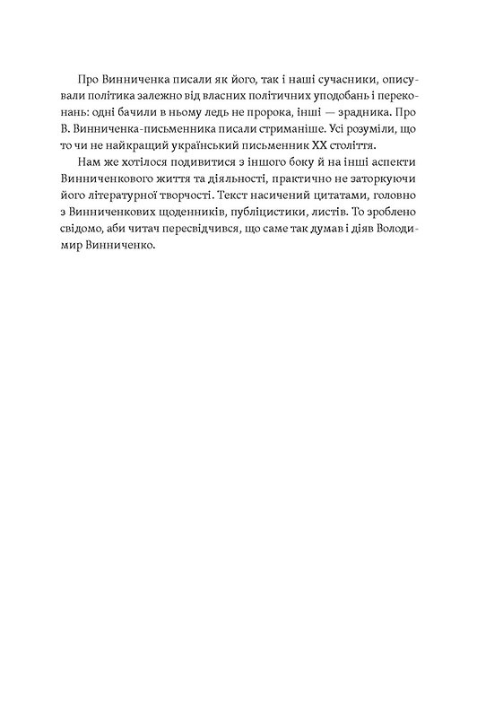 Винниченко — автор тези «чесність із собою», який водночас волів не вірити в Голодомор, бо чекав на гонорари за книжки від радянської влади. Його життя — це нескінченні протиріччя, жінки та зміни політичних поглядів.