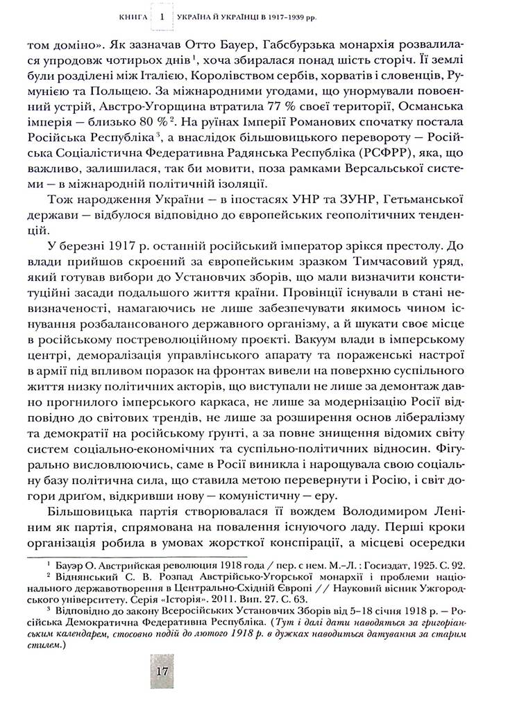 Перша книга присвячена міжвоєнному двадцятиріччю — вузловому етапу етнічної модернізації і мобілізації українців. Кульмінація Української революції, битва за Україну в контексті Першої світової війни і доля найбільшого в Східній Європі розділеного народу на тлі переможної ходи тоталітаризмів є провідним фокусом осмислення історичної долі України та українців.