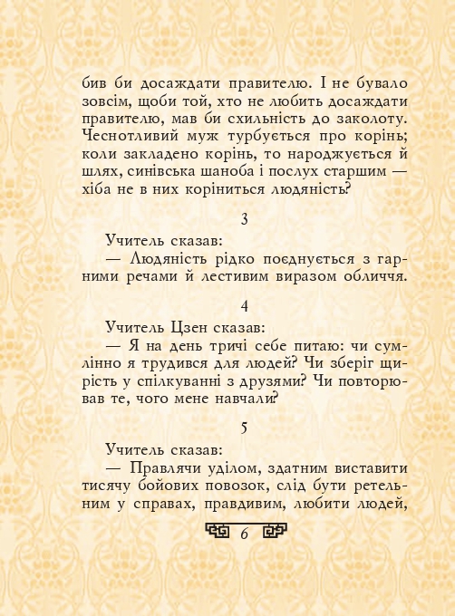 У виданні вміщено знамениті «Вислови» китайського філософа, історика та державного діяча Конфуція (551—479 рр. до н. е.).