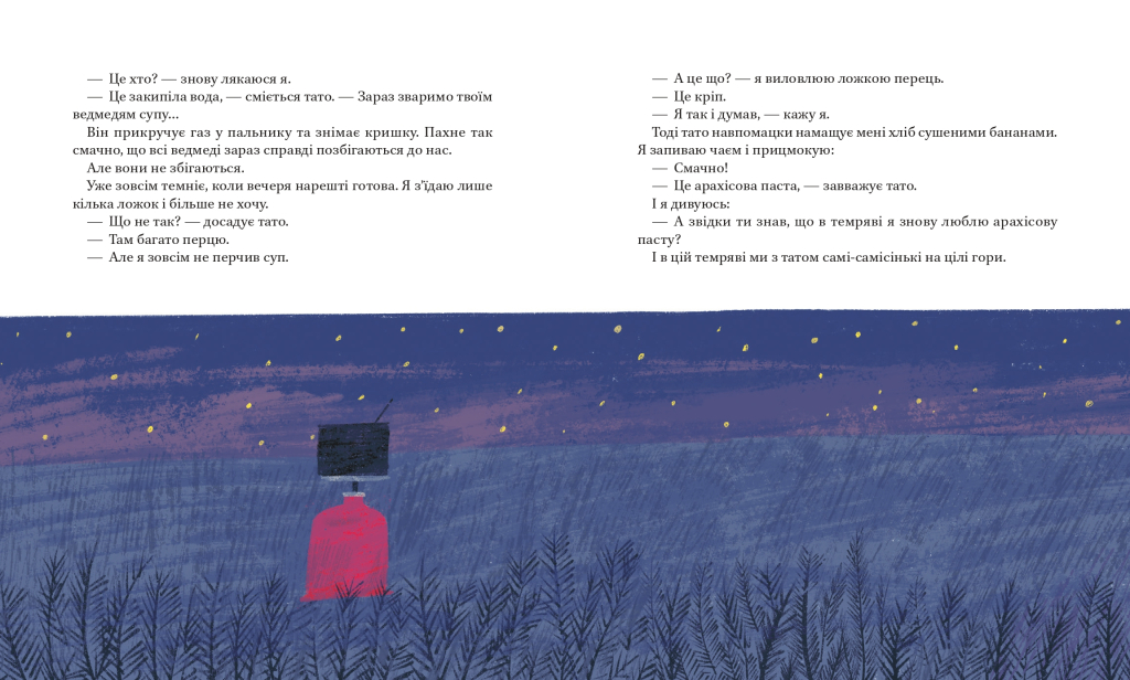 Чи вміють ведмеді гарчати, як сердитий кіт? Як називаються малюнки на зоряному небі? Звідки береться сум і скільки іграшок узяти з собою, коли збираєшся в мандрівку разом із татом? Ці запитання неодмінно постають у допитливих хлопчаків, які вперше збираються в похід із ночівлею на справжню Високу Гору.