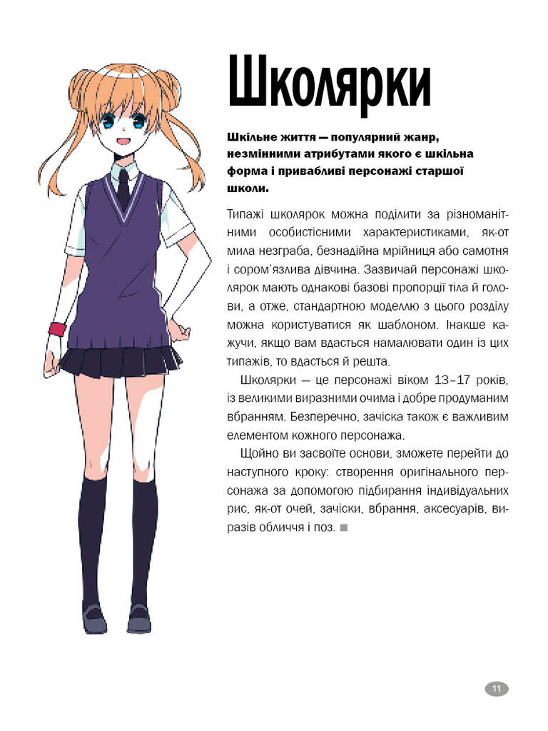 Крістофер Гарт, автор світових бестселерів із порадами для художників, пропонує стислий і ґрунтовний посібник для створення яскравих персонажів у найпопулярніших жанрах аніме. Формуючи образи за допомогою простих шаблонів, Кріс показує, як покроково малювати типових школярів і школярок, дітей, лиходіїв, комічних і фентезійних персонажів. Завдяки зрозумілим вказівкам і чудовим наочним прикладам і початківці, і досвідчені художники знайдуть на цих сторінках натхнення, спостерігаючи за великим розмаїттям персонажів, яких можна створити з елементарної основи.