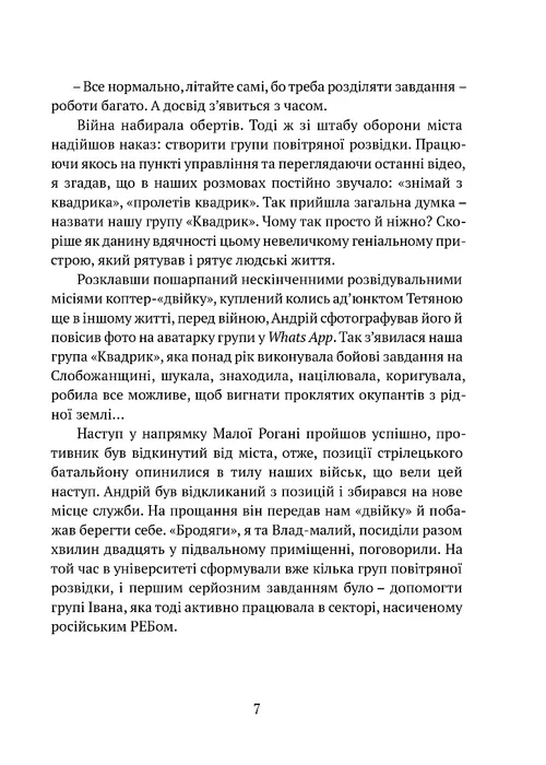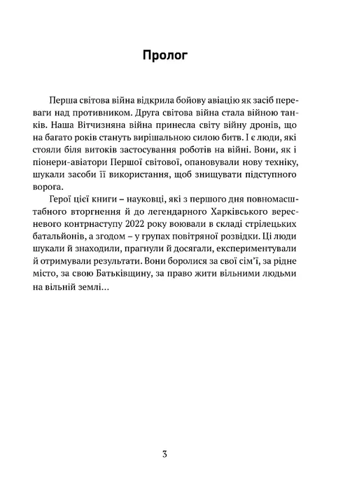 У повісті полковника Збройних сил України, доктора технічних наук, професора Андрія Тристана в художній формі описано, як група харківських військових-науковців від початку нападу російської армії освоюють нову зброю, що вперше використовується у російсько-українській війні та за якою майбутнє, – дрони. Вони воюють, водночас експериментують, шукають ефективних методів застосування дронів у бойових діях, інколи помиляючись, але досягаючи потрібних результатів у жорстокій війні з підступним ворогом. Автор сам брав участь в описаних подіях.